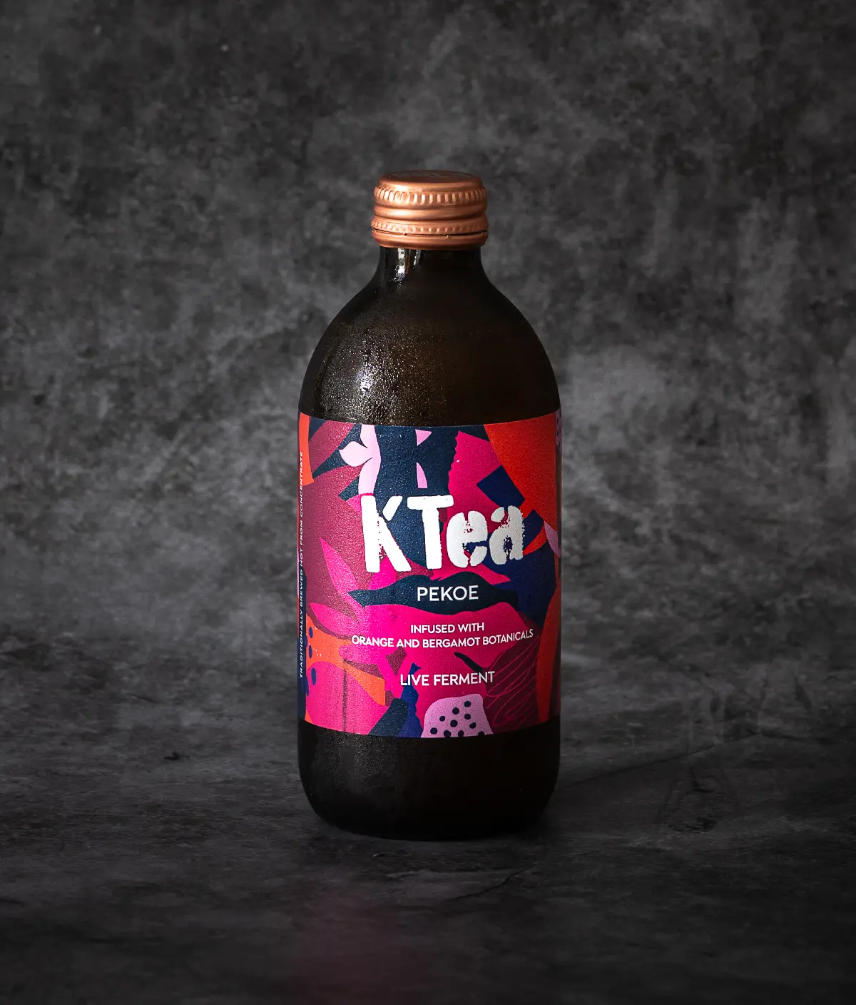 Fermented with organic Pekoe black tea and Yerba Mate, infused with citrus botanicals and black peppercorns. Bottle size: 330 ml.
